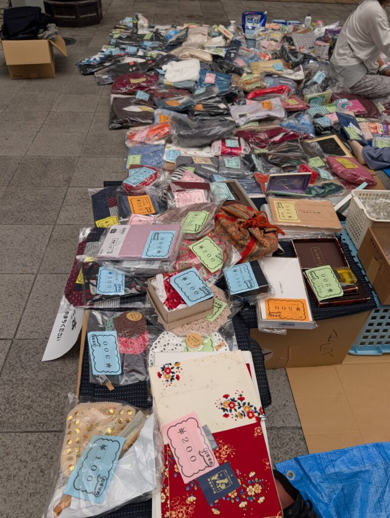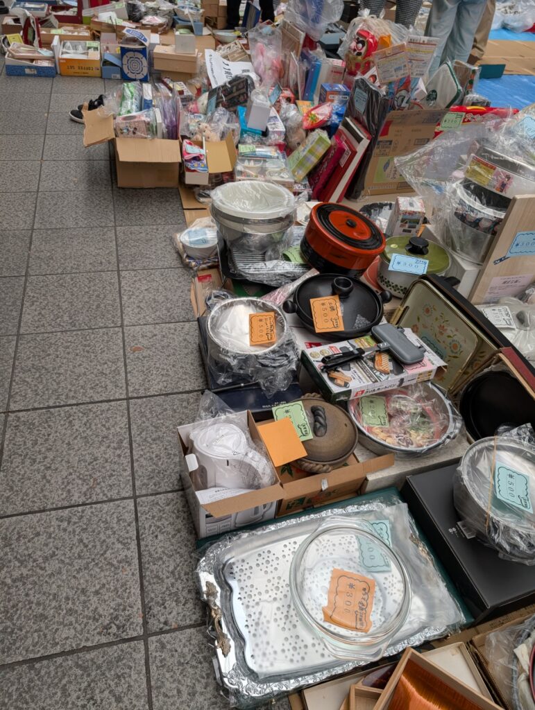 はーい、善意で寄せられた品物が、善意の人を売り手として、善意の人々に買われて、その善意の売り上げが被害者のために使われていくのですから、このバザーの意義は強調しても強調しすぎることはありません。  ねw